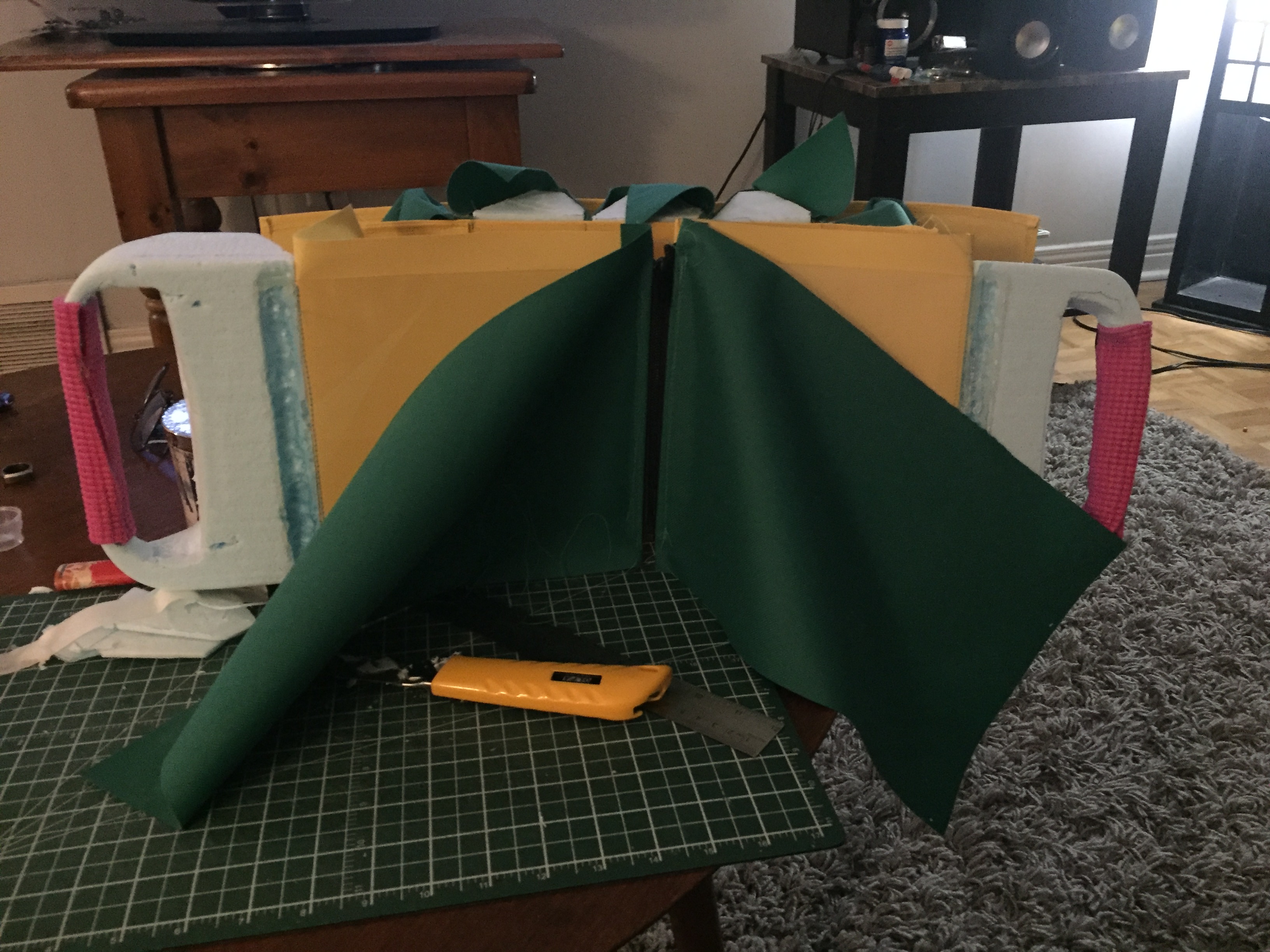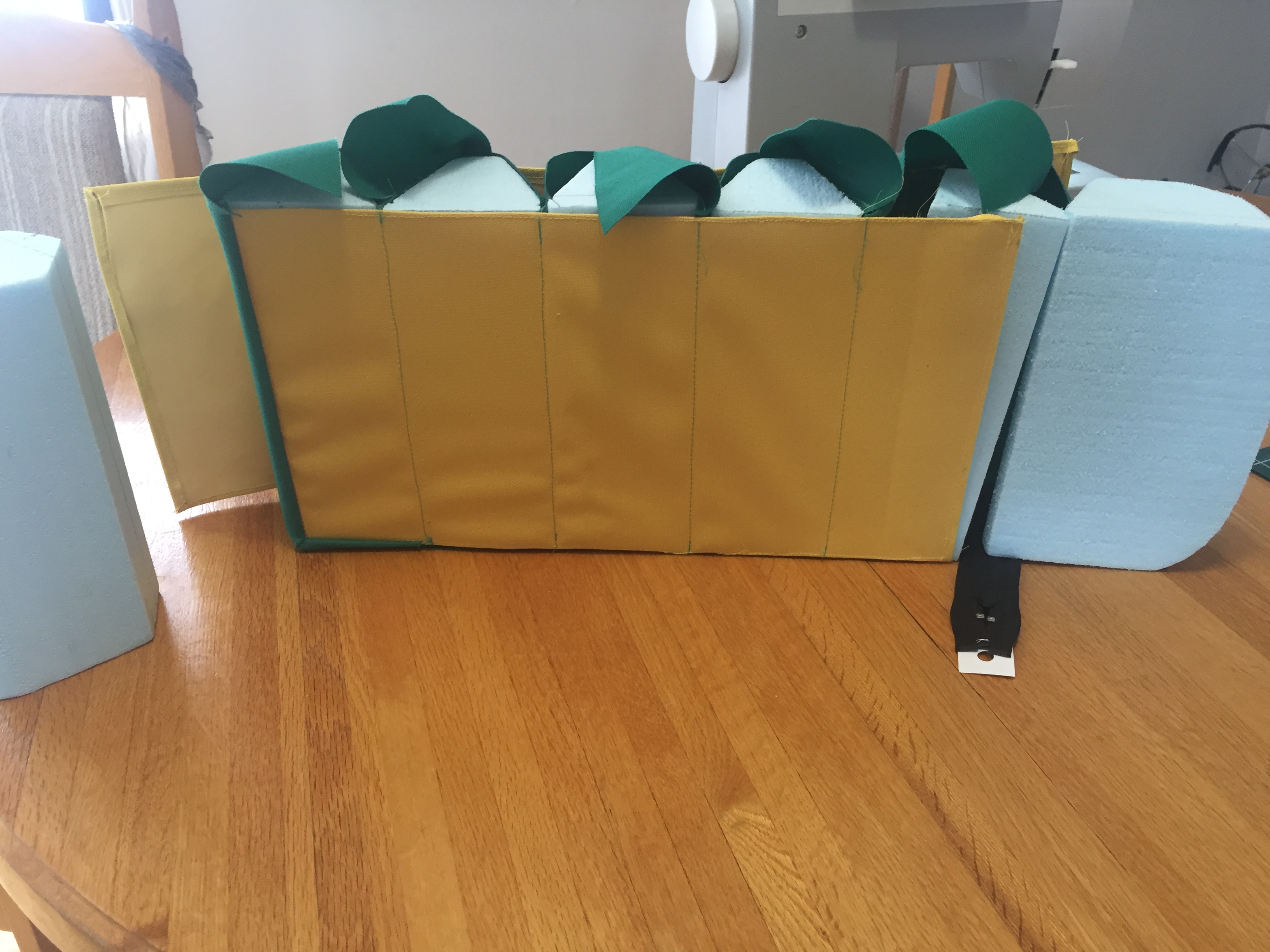 The final model was sewn using cordura, a polystyrene sheet was added to provide structure. Turtle pack accommodates users of different sizes with removable handles (Shown right).